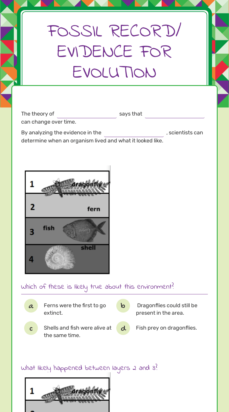 The evidence of evolution worksheet set is a series of diagrams and short activities to illustrate each of the major types of discoveries that support .